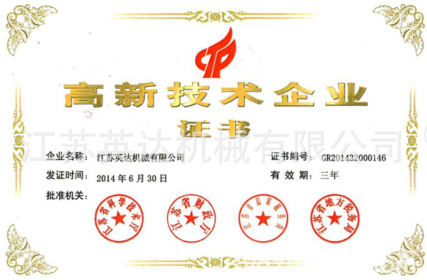 公司率先通过ISO9001:2008质量管理体系认证、ISO14001:2004环境管理体系认证。拥有一支专业的技术团队,先后取得了网带通过式抛丸机、新型机械回收喷砂房、辊道通过式重钢抛丸机等三十项产品专利和10项江苏省高新技术产品。(注:各项产品专利及所有证书详见企业官网:http://www.ydzj.net/或阿里诚信档案)