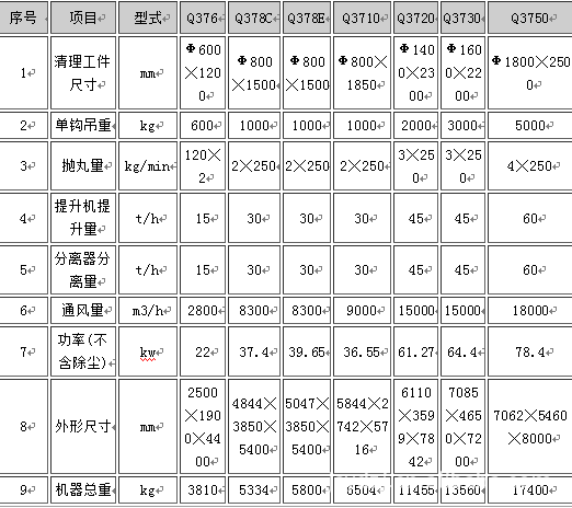 三、Q37系列抛丸清理机技术参数