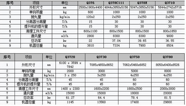 二、 Q37系列吊钩抛丸清理机技术参数